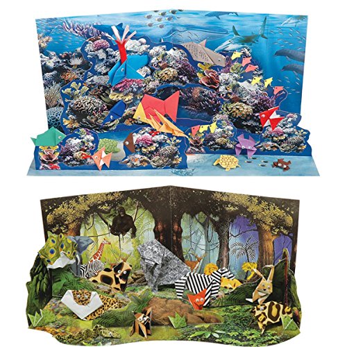 The jungle and deep sea animals have always been a topic of great interest and intrigue among children. In pursuit of colonization, man has ruthlessly killed these species for personal gains. There has been ever-increasing public outcry targeted at protection of threatened animal species. This topic has been given due importance in the children's school curriculum. This kit provides a stimulus for concern of animals in children. A rich brew of Origami just beckons to be unfolded by paper folding and mastering the techniques. Two detailed illustrated books with folding instructions provided in the kit help the child in making these lovable creatures. They can then showcase the completed Origami animals in 2 vivid and realistic dioramas. The jungle and deep sea coral reef dioramas are constructed by pasting together stiffened cardboard cut-out sheets provided in this pack. Make a fabulous collection of Origami jungle friends and a fantastic set of Origami sea creatures in their natural habitat unlike any you've ever seen! Contents: Origami sheets: 84 Cut-outs for jungle diorama: 5 Cut-outs for Coral Sea reef: 5 Marker pen: 1 Adhesive: 1 Instruction Book with illustrations: 2