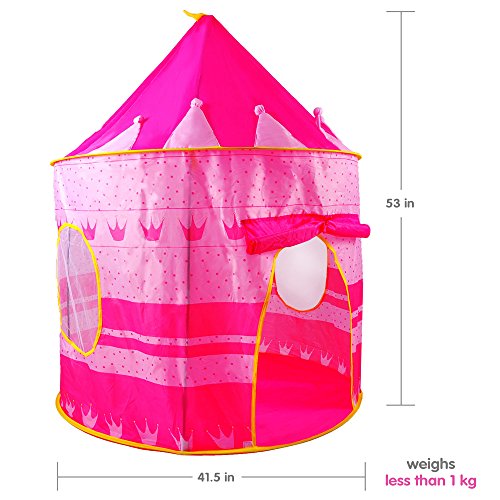 This castle tent is a great addition to your little girls' playroom. Your daughter will love the adorable pink polka dots pattern, and she'll surely enjoy playing with her friends while their imaginations soar. It has a front "door" closure, two mesh windows for ventilation, and a spacious interior, providing a fun playhouse for kids to play or have slumber parties in.