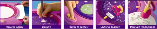 Product description: Extraordinary: a machine to draw mandalas with great features!By simply pressing an electric button, stencil mandala is automatically placed in the right place to draw the selected shapes.With its butterfly hole punch, the child can enhance their drawings with very pretty cut out butterflies.With its self-inking stamp, children can also make a nice romantic frieze.With its very stylish line and its ultra-trendy colours, this mandala maker is more stylish and more extraordinary than ever!