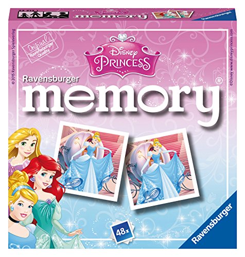 A set of 48 bright and colourful high-quality memory picture cards. Cards feature lots of different images of your favourite Disney Princesses including Ariel, Belle, Cinderella and Aurora. There are 24 different pairs to match up and collect in this classic game. The game can be played to suit different ages and abilities; for younger children use fewer cards, but you'll be surprised at just how good children are at this game - there is every chance that as their skills develop they will beat you! The memory cards are made from sturdy high-quality card, laminated on both sides with a colour print. Box Contains 48 Disney Princess memory cards Includes lots of favourite Disney Princesses including Ariel, Cinderella and Belle Includes a set of 48 mini memory cards This game is suitable for 2-6 players A fun picture matching game which is a great way to develop matching and memory skills Ages 3 Years+