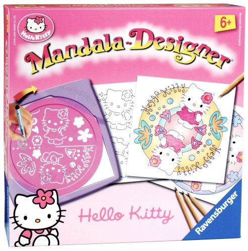 Content 1 Frame, 1 Mandala Template, 10 sheets of paper, 1 felt tip pen and 4 coloured penscils.With this Mandala Template you can create the most beautiful Hello Kitty Mandalas