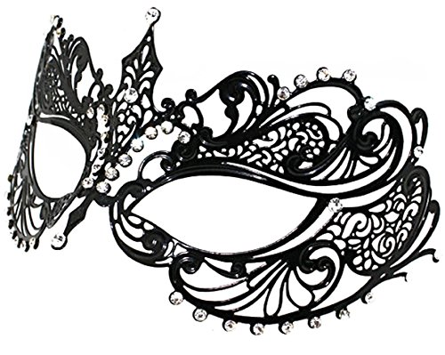 The version of the gorgeous Anne black Venetian Metal Masquerade Mask, suitable for most face shapes and ties with satin ribbons.