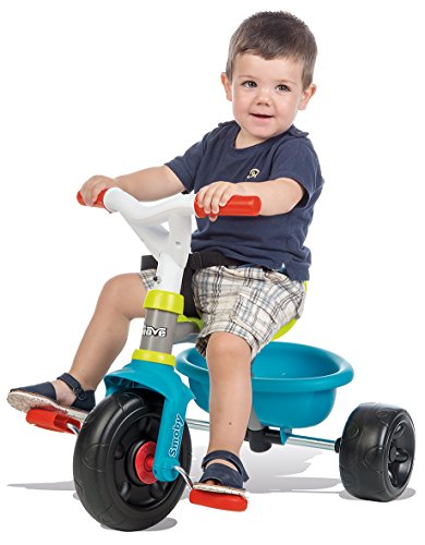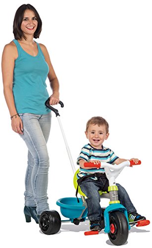 Free wheel disposal at the front, to prevent the pedals from turning when the parent is pushing the trike.Handlebar locking device, to prevent the kid to interfere in the steering when parent is pushing the trike.