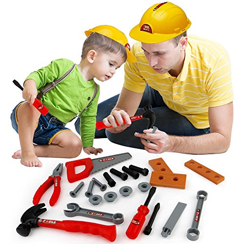 SONi 24 PCS Kids Tool Set Pretend Tool Play Construction Accessories with Safety Hat Best Workshop toys For Boys and Kids-Pack in Mesh storage bag.