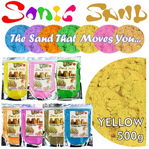 Please Note: Moulds or trays not included. Sonic Sand Sand Never Drys Out Fun And Creative Play Sand Sand Holds Together With Special Formula Mould With Your Hands, Build Crazy Shapes 500g Per Bag Indoor or Outdoor Use Easy Clean Ages 3+ Each Bag contains 500g approx. of sand. Colours Available: Blue Green Pink Yellow Orange Purple Natural Please Select Colour from above variation menu.