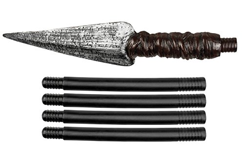 This artificial spear is intended for adults and measures approximately 59 inches The handle comes in black and an artificial cutting blades is grey dyed with worn effect. Whether it's Gladiator fancy stone age man costume or lots of other fancy dress with this spear you always have the right art weapons to hand.