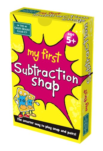 My first subtraction Snap This unique deck lets you play two family favourites with the little ones; Snaps and Pairs, using early-years subtraction to help strengthen fundamental maths skills in young minds. For example, when playing Snaps with this delightful deck of cards, the following cards would snap with each other: 5-3 and 10-7 To play Pairs, simply turn all the cards upside down and turn over to see if they match. If they do match then the cards are kept, if not you turn them back face down. The aim is collect all of the cards. Both of these fun games help children develop basic subtraction and fundamental maths skills. All of our Snap and Pairs games are made in the UK, using FSC paper and card responsibly sourced for greener games. Helping children gain a head start at school in a challenging subject, My First Subtraction Snap is the smarter way to play Snaps & Pairs!