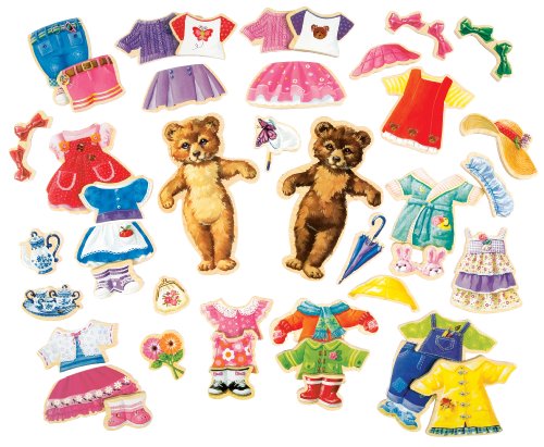 Shure Bear Cubs Dress Ups Includes 41 Magnetic Wooden Outfit Pieces. Adorable Watercolor Illustration Style And Detailed Pieces Create Fabulous Story-Telling Opporunities! Includes 2 Bears, 41 Magnetic Wooden Outfits And Accessory Pieces And Vinyl Carrying Bag With Storage Pockets.
