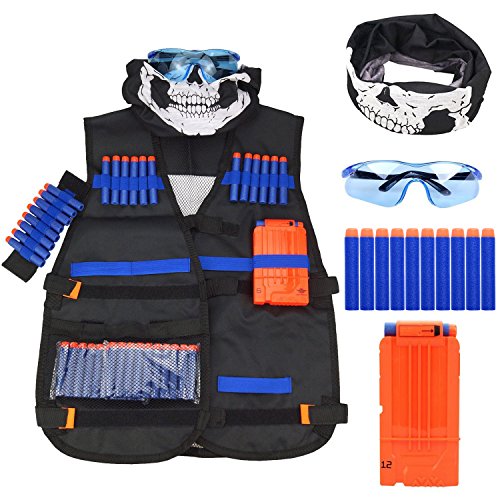 3.Adjustable tactical vest designed for 5 years up. Made of breathable material to comfort in a game.
