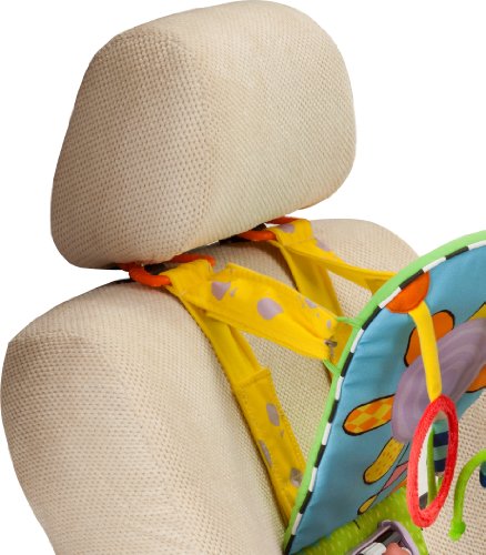 Baby's feet touch and move the foot-stimulation beads, to learn about cause & effect and develop senses and motor skills Baby reaches to grab and play with the hanging toys for motor skills and senses development Age: Birth+ Car activity center for rear-facing baby Unique foot stimulation feature Three intriguing hanging toys - chime bell Kooky character, a crinkling bird and a baby-safe mirror Easy to attach and adjust for baby's play