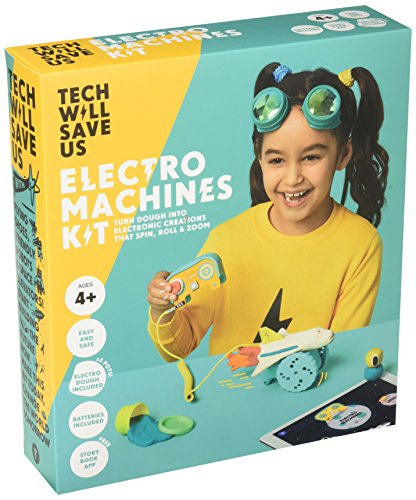 The Electro Machines Kit is part of the Dough Universe, designed for children ages 4-7 to teach the fundamentals of how electricity works through play. Using special conductive dough, a smart controller and motor, kids create whirring robots and zooming race cars while learning about motion!