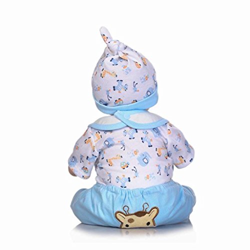This is a perfect doll art designed by a famous artist.Cute and realistic reborn dolls are made of high quality soft silicone and PP cotton,comfortable touch. Safe non-toxic, pure environmentally friendly materials. Head,arms and legs are soft silicone,body is cloth filled with cotton.Can pose a lot like limbing,sitting and lying.Can not standing. Cloth doll body should not enter into the water. The doll will come with outfits.It will be a growth partners of your baby and the one of your family.Wish you love and take care of her (him).