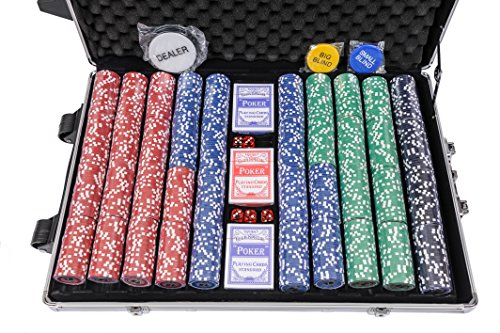 NON MAINLAND UK / HIGHLANDS: YOU MUST SELECT EXPEDITED SHIPPING OPTION TO ADD THE CORRECT DELIVERY CHARGE FOR YOUR AREA. Otherwise your order will not be processed. || The Tournament numbered poker chips set has been specifically designed for use in home games, pub poker tournaments and amateur poker leagues. The professional poker chips included are great quality and offer unbeatable value for money. These numbered poker chips weigh 11.5 grams and have denominations printed on both sides for ease of use during play, plus they look great and will help create that elusive poker room atmosphere at your game. The breakdown of chip denominations in each poker set has been carefully chosen to meet the requirements of either cash play or a "Freezeout" style tournament, where blinds are increasing at set time intervals. This 1000 piece poker set is ideal for a 4+ person single table poker tournament and will suit most standard tournament structures and games. These numbered poker chips are manufactured by Riverboat Gaming, the #1 poker set supplier in the UK. || This poker chipset now includes over £15 worth of free accessories! | FREE: 3 packs of 100% plastic playing cards (not plastic coated or card as you will find in most chipsets) | FREE: Professional Size Dealer button (not the small plastic button often included) | FREE: Blind buttons.