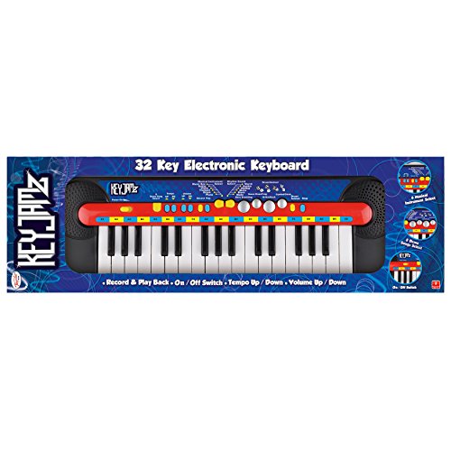 Kids 32 Key Electronic Keyboard. Power on/off switch and 8 demo songs. 6 musical instrument effects and 6 rhythm select. Ideal for improving hand-eye coordination and fine motor skills. Box size - (W) 52.5 cm x (H) 16 cm x (D) 5 cm.