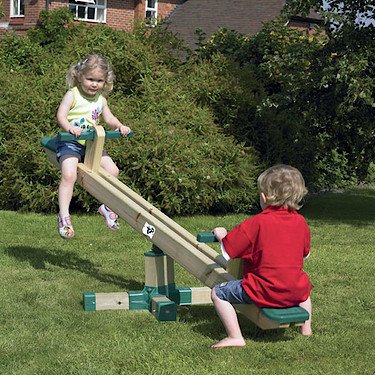This TP wooden seesaw not only moves up and down but also rotates a full 360°. The wood is carefully selected high- grade Scandinavian Redwood. It is treated to ensure a long life, and is child safe. Only for domestic use.