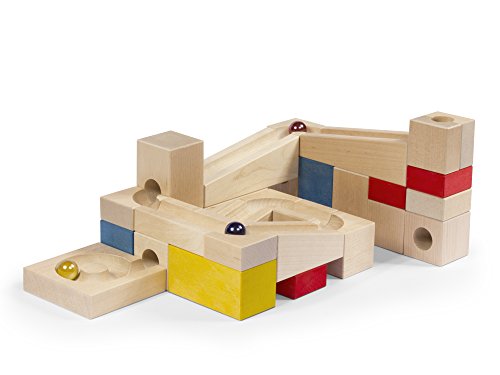 Crafted from 100% natural birch wood, our toy set features 30 interchangeable wooden pieces and three marbles that allow your child to craft their own unique puzzles, challenges and designs to move each marble from a starting area to the finish line. A traditional child's toy that promotes motor skills as well as haptic and sensory abilities, kids of all ages love how fun it is to create their own marble run with twists, turns, spirals and more.