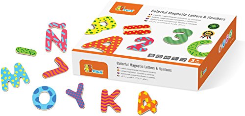 Viga Toys Colourful Magnetic Letters and NumbersYoung children will love these colourful magnaetic wooden letters and numbers by Viga Toys. Each of the numbers and letters are beautifully decorated with bright patterns. Viga Toys colourful magnetic letters and numbers can be used on a magnetic board, fridge door or any flat surface. This toy is a great introduction to letter and number recognition and then to spelling and basic mathematics. There are 77 letters and numbers including extra vowels. Viga Toys magnetic letters and numbers are suitable for age 3 years and above.