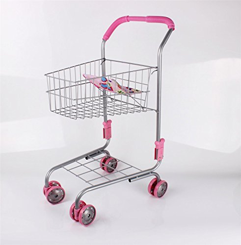 Kids will love to go shopping with parents down the aisle with this mini supermarket trolley. A perfect way to encourage them to learn and have fun at the same time. Great for imaginative play, this miniature trolley is made from sturdy metal frame and has pivoting front wheels and accessorised shapes and patterns folding seat for a teddy bear or dolly.