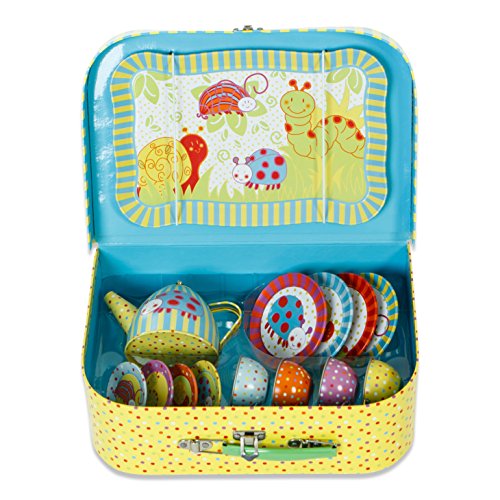 Each piece in this fantastic 14 piece metal tea set is illustrated with a fun wiggly bug in lovely bright colours.